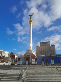 I spent part of yesterday evening walking the Independence Square, the Maidan Nezalezhnosti, and then again, this afternoon. It is difficult to imagine now, what happened here that “Winter On Fire”. The lights are bright, traffic zips through. My bus, the 114, comes through there.